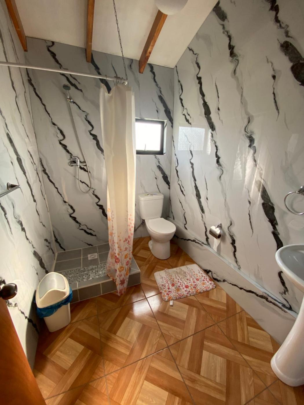 Habitación Doble. The double room offers a tea and coffee maker and a dining area, as well as a shared bathroom featuring a shower. The double room features a wardrobe, heating and garden views. The unit offers 1 bed. ;